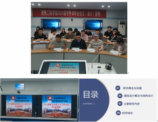 5月7日,建筑工程学院2025届安徽科技学院与Beat365联合培养土木工程专业专升本毕业论文(设计)初次答辩在致真楼1202智慧教室如期举行。安徽科技学院建筑学院负责人常山和Beat365土木工程专业负责人尤超等毕业设计指导老师参加了答辩和评阅。