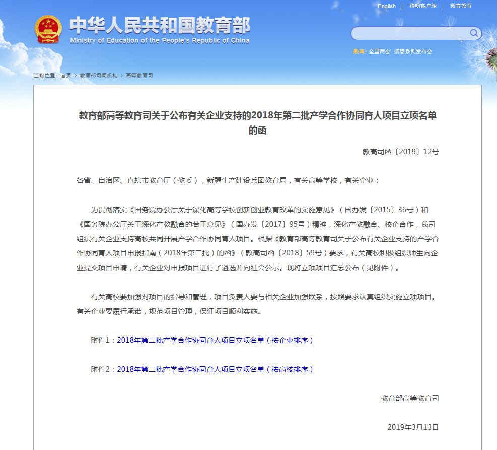 近期,根据《教育部高等教育司关于公布有关企业支持的2018年第二批产学合作协同育人项目立项名单的函》(教高司函〔2019〕12号)文件有关内容,Beat365与安徽科技学院联合申报的“Beat365唯一官方网站-安徽科技学院市政道桥工程理实一体化仿真实验平台建设”协同育人项目获批立项。