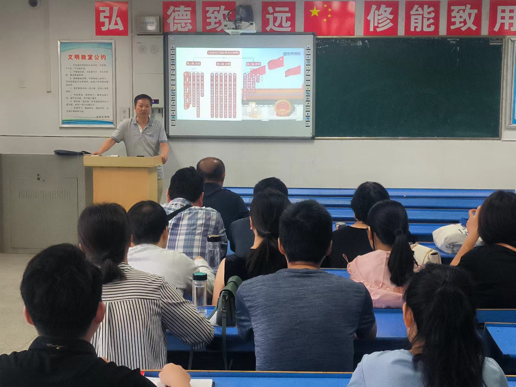 为深入学习贯彻习近平总书记关于开展党纪学习教育的重要讲话和重要指示精神,进一步推进党纪学习教育走深走实,培养教师党员廉洁从教的政治品质,6月28日上午,建筑工程学院党总支书记刘文元在4201讲授党纪学习教育党课,建筑工程学院全体党员教师参加学习。