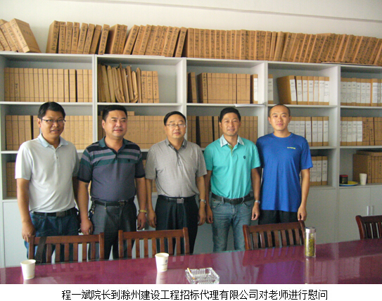 在滁州建设工程招标代理有限公司,总经理傅延斌热情接待了程院长一行。程一斌与傅经理就企业的经营情况、蒋衡老师顶岗工作情况进行了深入交流,了解到除了老师在这里锻炼之外,还有土木系的毕业生也在该企业工作,并成为企事业骨干。程一斌肯定了蒋衡老师在顶岗实习工作的成绩,指出工程造价专业教师应该在与生产一线锻炼,才能更好的培养出高技能的人才。