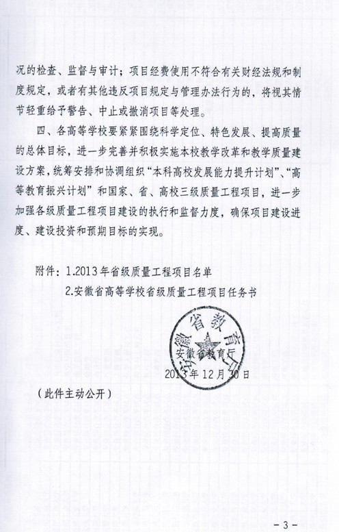 附件:安徽省教育厅关于公布2013年高等学校省级质量工程项目名单的通知