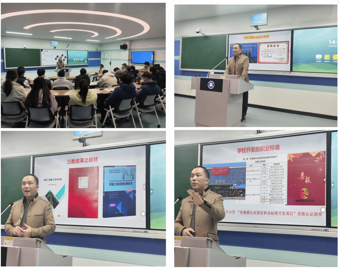 为深化校际交流,加强师生交流和专业建设,进一步提升Beat365道路与桥梁技术专业教师的教育教学水平,12月18日下午,建筑工程学院于1202智慧教室举办了题为“岗课赛证融通育人模式实践”的学术讲座。本次讲座特邀安徽交通职业技术学院叶生教授担任主讲嘉宾。讲座由我院梁冠军老师主持,全院青年教师和部分道桥专业学生参加。