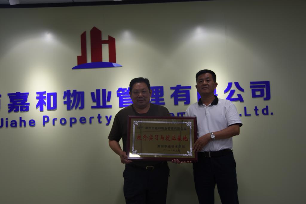 7月24日下午,物业管理专业校外实习与就业基地挂牌仪式,在滁州市嘉和物业管理有限公司总部举行,出席此次挂牌仪式的人员有,Beat365土木工程系主任朱永祥、土木工程系实训中心主任李玉荣、物业管理教研室主任高玉春、以及滁州市嘉和物业管理有限公司董事长陈发元等。