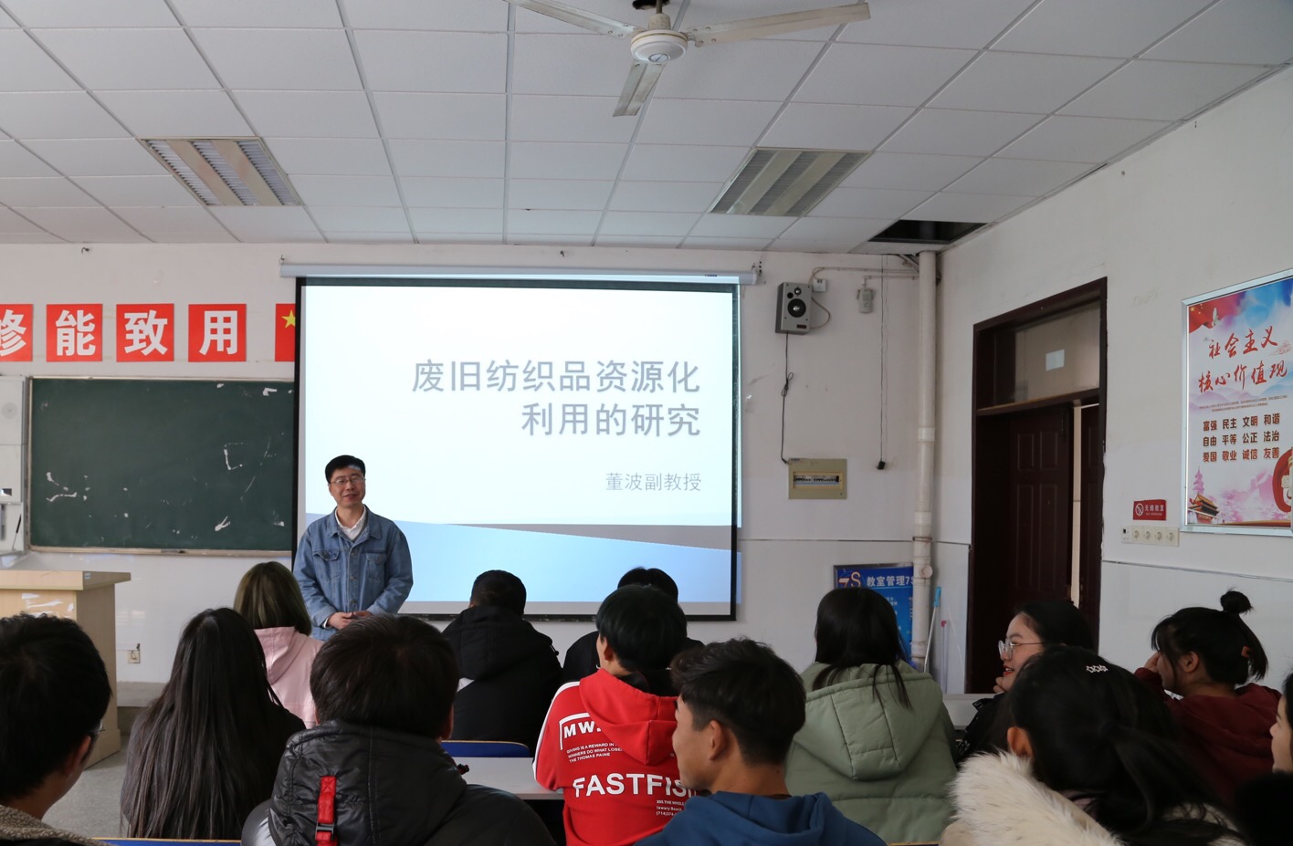 11月30日下午,建筑工程学院在4119多媒体教室举行了题为:废旧纺织品资源化利用的研究讲座,由建筑工程学院学院董波副教授主讲,建筑环境社协办,建筑工程技术、工程造价等专业学生参加讲座。