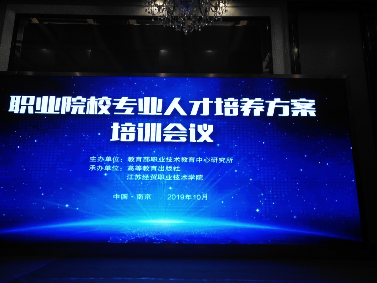 2019年10月28-30日,由教育部职业技术教育中心研究所主办,高等教育出版社及江苏经贸职业技术学院承办,职业院校专业人才培养方案培训会议在南京召开,我院陈燕、朱宝、林秋怡等3位老师参会。本次培训活动主要为对接国家教学标准,优化专业人才培养方案,深化职业教育人才培养模式改革,提升技术技能人才培育质量。