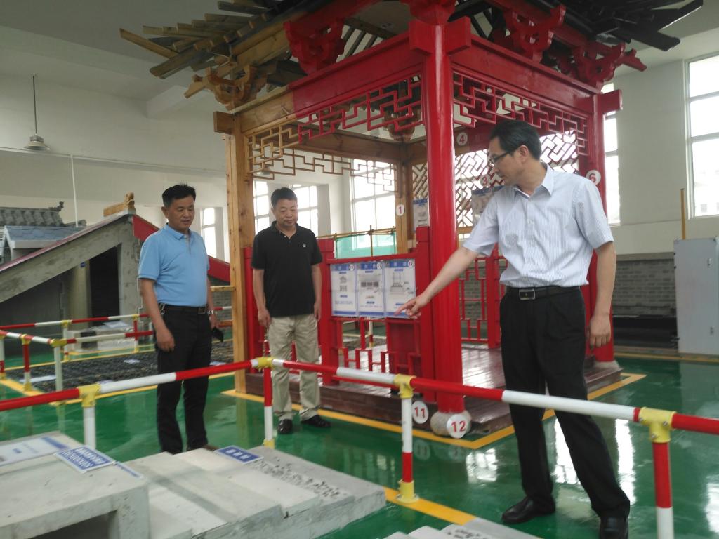 6月19月下午,校党委副书记、校长许雪峰到建筑技术综合实训馆调研,办公室主任邹全胜、土木工程系主任朱永祥等陪同。