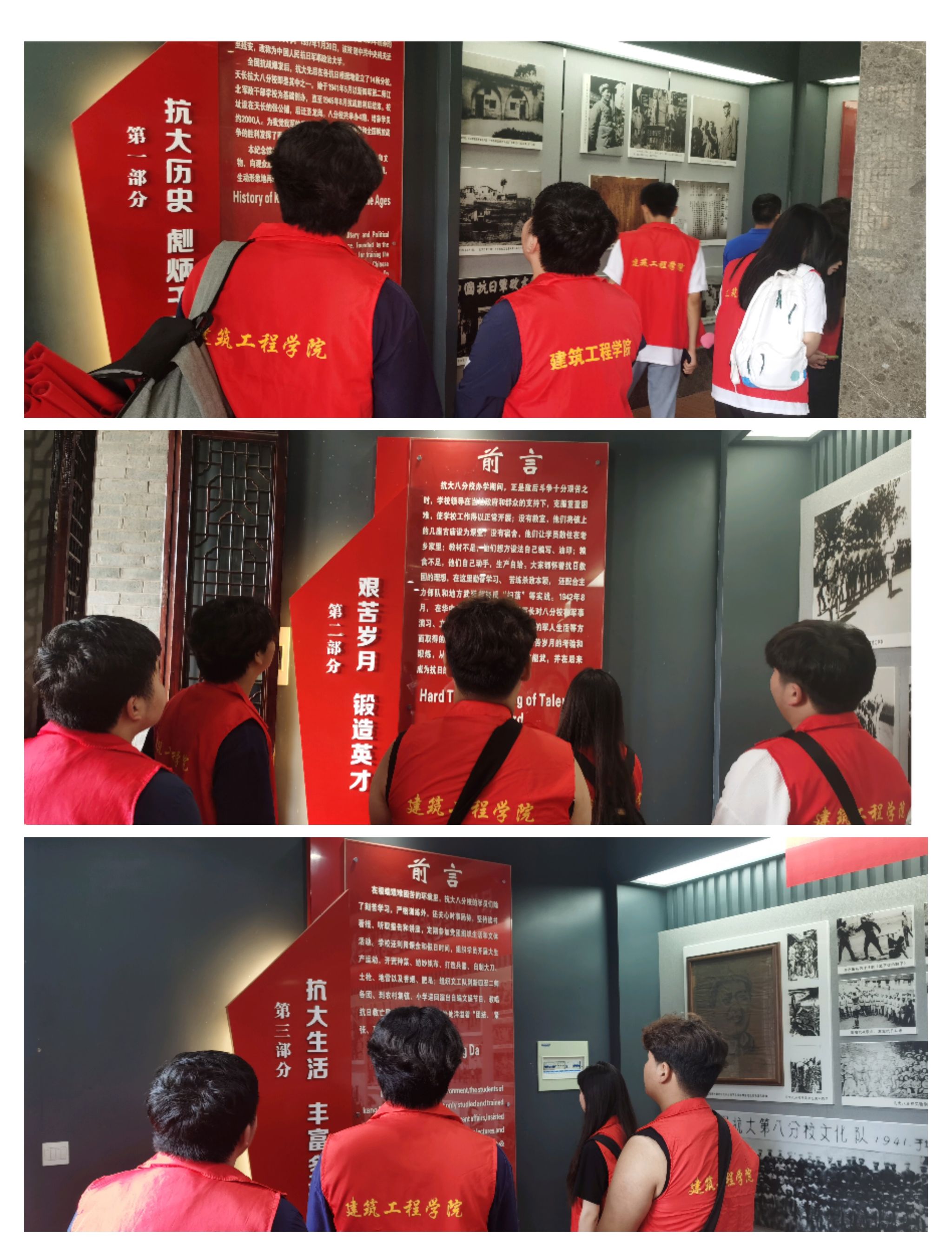 到达目的地后,志愿服务队认真聆听讲解员的解说,驻足细观书籍、照片、遗物等珍贵史料,追寻革命足迹,重温革命历史。抗大八分校纪念馆共分为五个单元厅,分别是:抗大历史,彪炳千秋;艰苦岁月,锻造英才;抗大生活,丰富多彩;军民一家,鱼水深情;抗大九校,历程永存。每部分遗址都值得我们驻足,每单元都让我们流连忘返。在这里,可以感受到抗大八分校在艰难而光辉的历程中锻造形成的艰苦奋斗、勇于牺牲、求真务实、与人民群众保持鱼水情深的抗大精神,以及陈毅、谭震林、粟裕、张云逸、罗炳辉等老一辈无产阶级革命家在抗大八分校工作、生活时形成的艰苦朴素、勤俭节约、清正廉洁、一心为民的高尚情操。