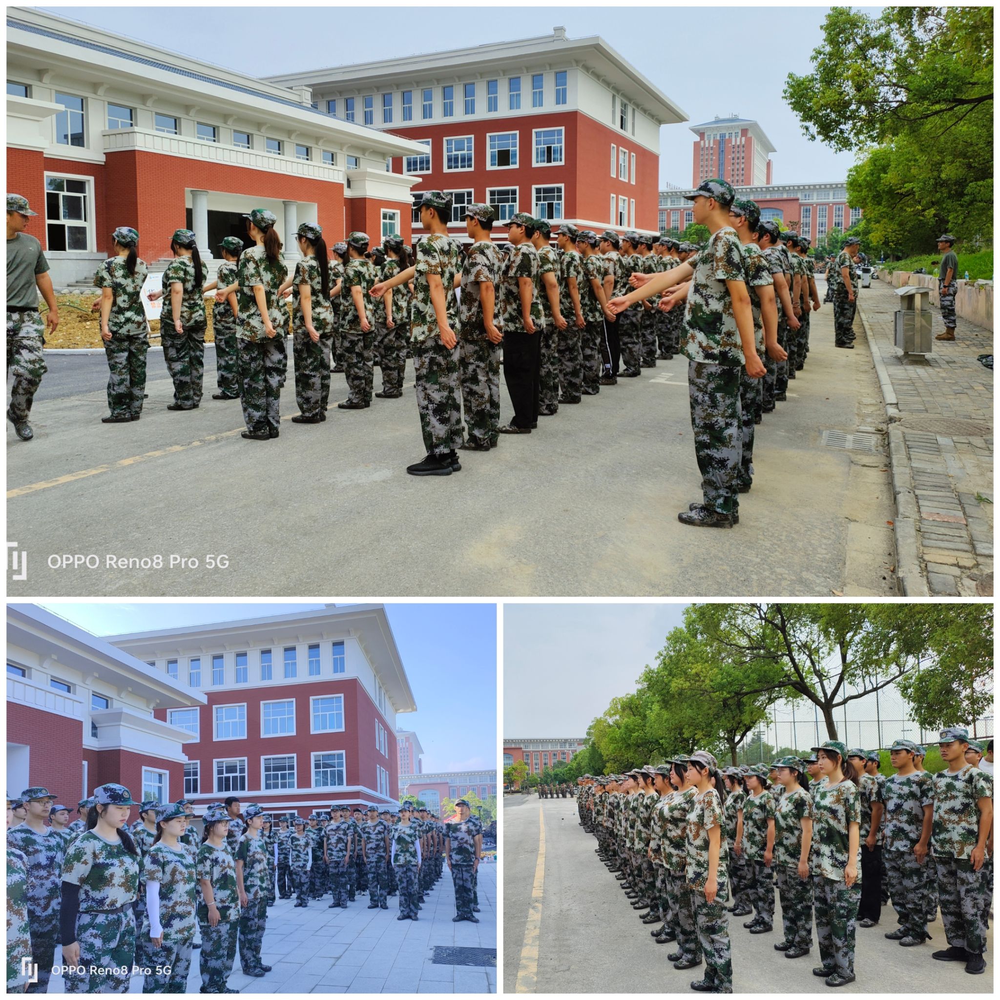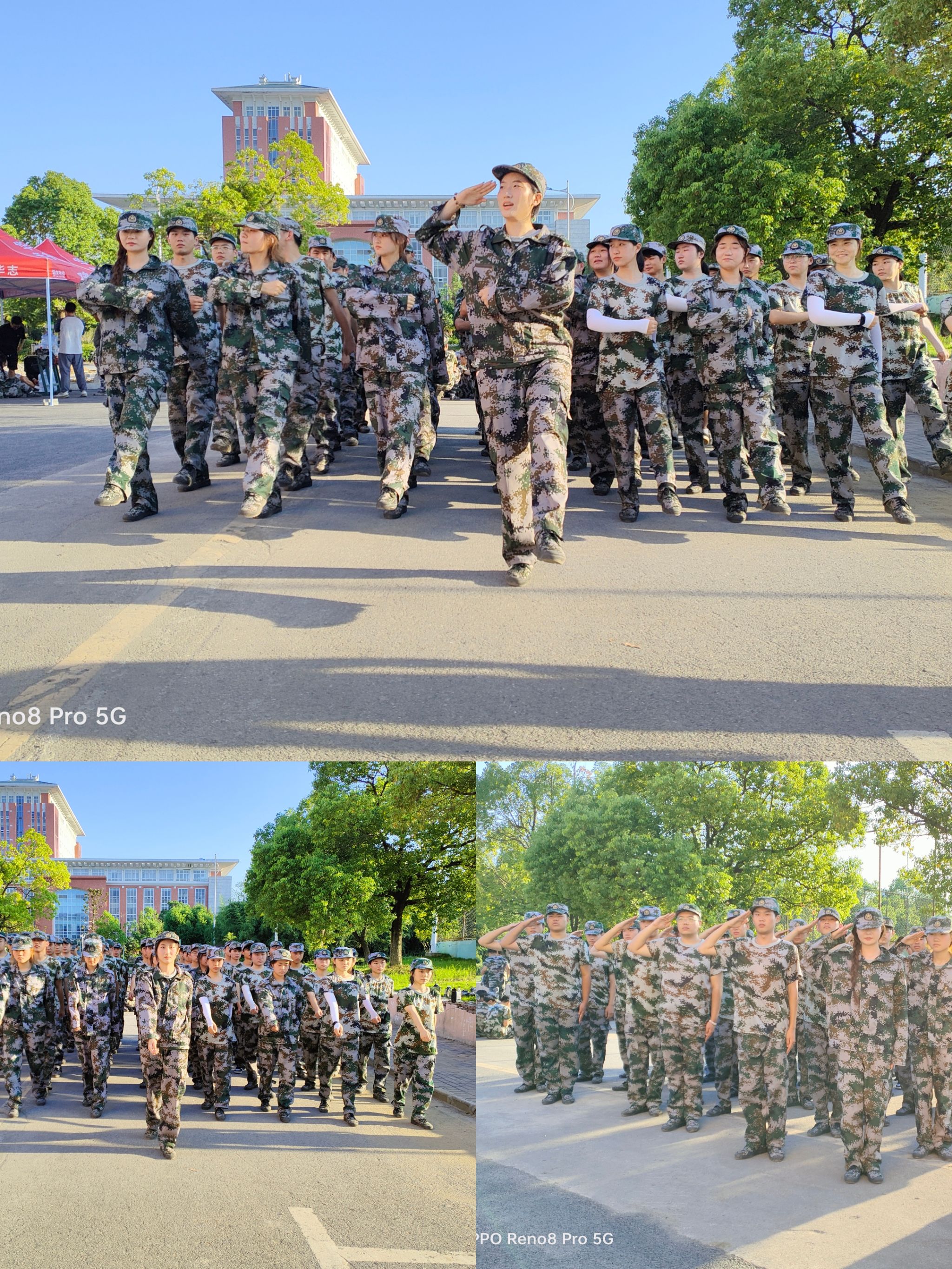 一声号令,整齐划一的方队,整齐有力的步伐。教官严格又有耐心地纠正每位同学的军姿,在教官“一二一”“立定”等口号下,同学们一次又一次的练着原地走、齐步走、蹲起等动作。在一令三动的命令之下,在一句句口令指挥下,握拳、抱腹、摆臂、踏步,我们的正步渐渐整齐划一,每一步都铿锵有力。在校园里形成了一道别样的风景。迷彩服是我们的象征,象征着我们正在以军人的标准提高军事素养,锻炼身体素质,每一个方阵都是一个大家庭,大家都团结协作、互帮互助、共同进步。军训是我们在大学生涯中必不可缺少的一课,它使我们了解了国防教育和部队管理、磨练了我们身上的每一个细胞。