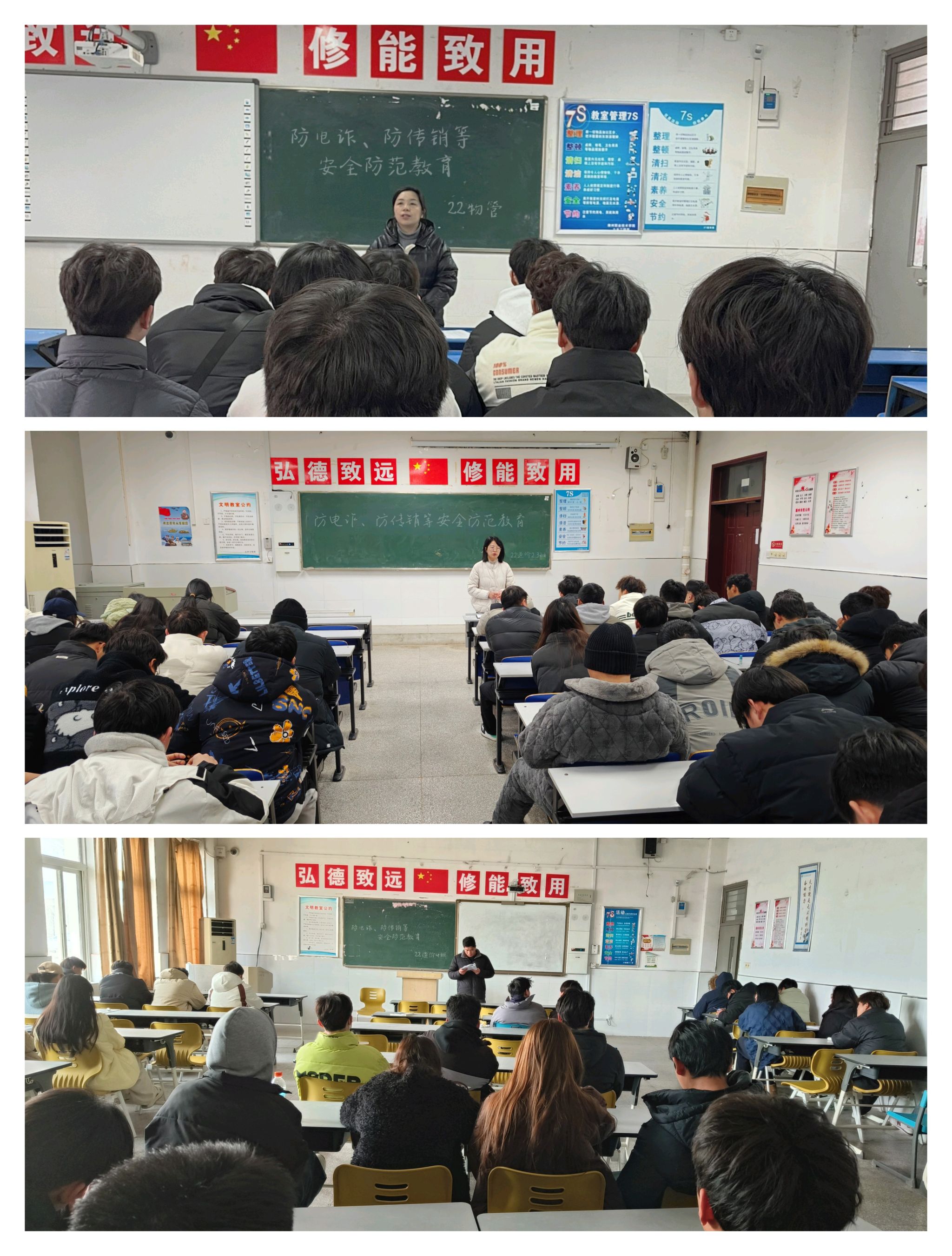 各班辅导员结合实际案例,归纳犯罪分子常用的诈骗方式和手段,细致分析受害者上当受骗的原因,并仔细讲解各种防范对策及被骗后的补救措施,教育同学们在生活中做到不轻信、不转账、不上当,遇到类似诈骗要及时报警,更好地保护自己的财产安全。