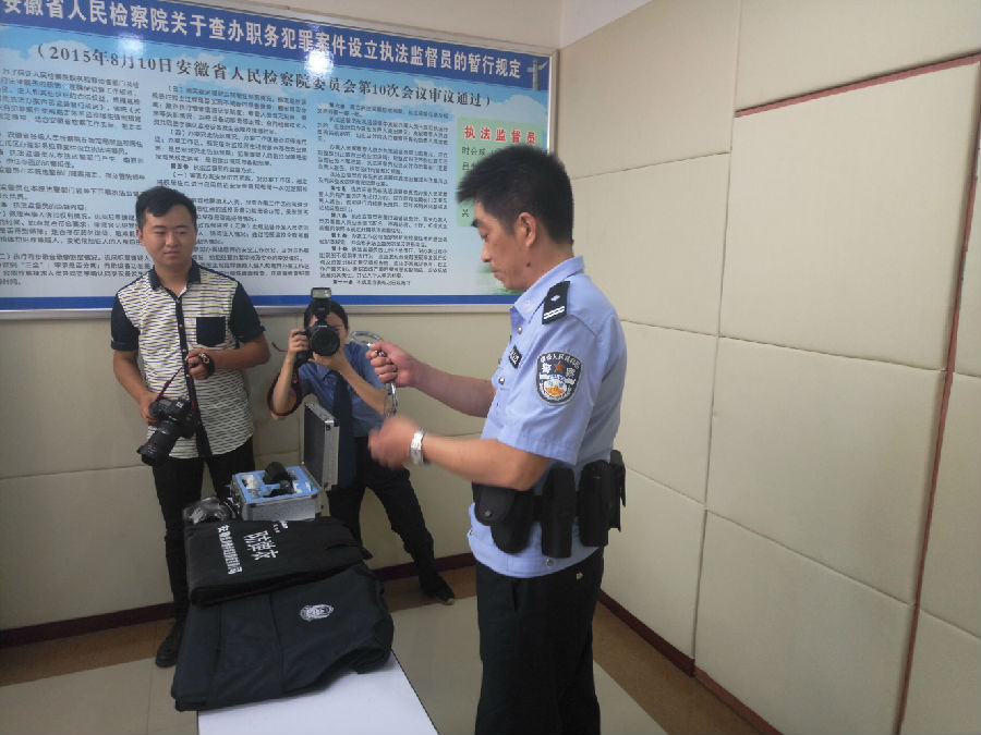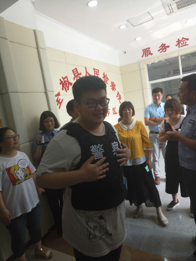 同学们来到工作室观看宣传片,检察官以情景模拟、法条解读的方式给大家解读刑事侦查工作。反贪局检察长结合热播剧《人民的名义》给大家讲解办案流程,并给大家普及防范诈骗知识,此外,还给大家展示了反贪局侦查信息化设备。法警大队负责人给大家讲解电棍、手铐、防狼水强光手电警绳的用法,给大家试穿防弹衣、防刺服,脚链、抓捕网伸缩抓捕器等。此外,还参观了接待室、询问室、同步录影录像室等一系列审讯侦查工作室。最后还带领大家参观了现代化的法制教育基地。通过此次活动,开展了一次别开生面的法制廉政教育。