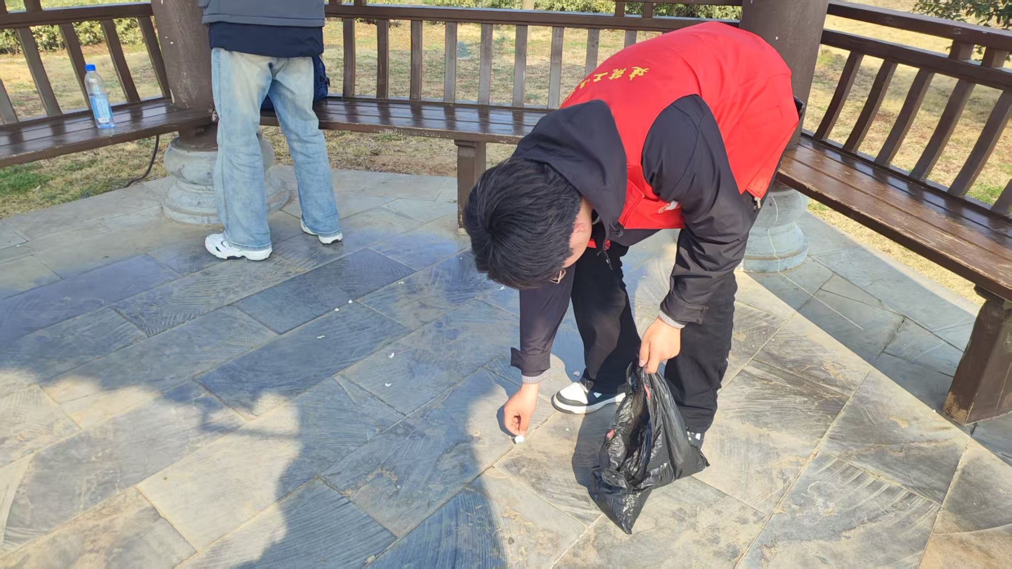 活动当日,阳光正好。下午两点,志愿者们准时在镜园门口集合,身着统一服装,手持垃圾袋和垃圾夹,热情满满。镜园作为周边居民休闲放松的重要场所,平日里人流量较大,随之产生的垃圾也不容忽视。随着活动开始的指令下达,志愿者们迅速行动起来,如同一群训练有素的环保卫士,分散到园区的各个角落。
