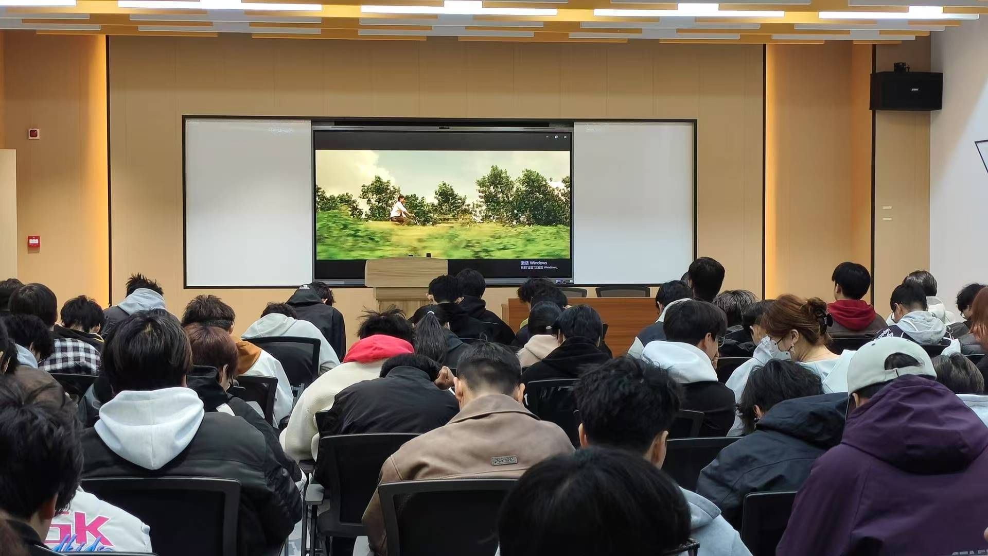 活动当晚,相关活动人员精心准备,有序组织同学们入座后,首先简要介绍了本次观影活动的目的以及意义,强调了雷锋精神对于当代大学生成长成才得重要指引作用,为观影拉开了序幕。随着影片的开场,同学们通通投入到雷锋电影的观赏中,雷锋纯粹质朴的笑容在荧幕上呈现,同学们仿佛被带回了那个激情燃烧蓬勃发展的年代,他在艰苦环境下毫不退缩,将个人的得失置之度外。一个个鲜活的场景让雷锋形象立体丰满,深深刻入同学们的心里,同学们沉浸其中,眼神里满是敬佩与想象。