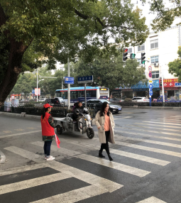 大家身着红色志愿者服装,站在路口,劝阻交通违法行为,引导市民和遵守交通法规,为路人答复问事问路等,为创建文明城市、和谐社会贡献自身一份力量。