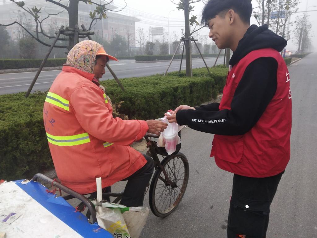 为弘扬雷锋精神,切实践行志愿活动。土木系18建工2班团支部成员在团支书王华语的组织下于3月19号早晨5:50从校门口出发,分为4个小队沿丰乐路、东坡西路、醉翁路为环卫叔叔阿姨送去早饭、豆浆。并协助环卫叔叔阿姨们打扫街道。