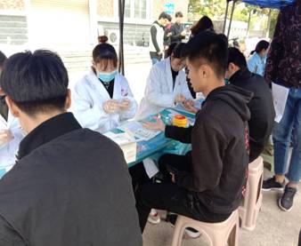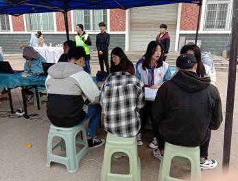 活动中同学们有序地排起长队,依次进行信息登记、血液类型检验、静脉采血等环节。等待献血期间,同学们紧张而兴奋,同时也为自己的行动能给需要的人提供帮助、挽救更多的生命而感到高兴。