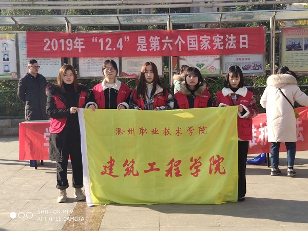 “宪法日”法制宣传日主要以宣传方式进行的。建工学院志愿者们将横幅挂在活动中心,营造出活动氛围,让市民及同学意识到法的存在。建工学院还联合陡岗社区组织了一场宪法知识竞赛,让更多的学生和市民深入了解宪法的重要性。在这种浓厚的宣传活动氛围下,市民对了解宪法产生了兴趣,认真听活动宣传,随后纷纷在活动横幅上签字。