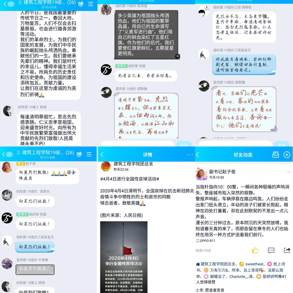 清明节是中国最重要的传统节日之一,它不仅是人们祭奠祖先、缅怀先烈的节日,也是中华民族认祖归宗的纽带。受新型冠状病毒疫情影响,2020年4月4日上午9点,建筑工程学院团总支于线上组织“清明祭奠英烈活动”,本次活动由团总支副书记赵子俊主持,团总支全体成员参加。