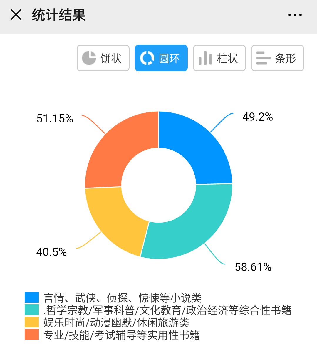 通过线上问卷调查,我们了解到大多数大学生读书是为了丰富课余时间和学习相关知识,一般所选择的书籍都是小说和文化教育等类型的读物,也有少部分人选择娱乐时尚、专业课方面的书。这个调查结果说明了如今的大学生都是比较爱好读书的,但阅读的书籍类型知识性不是很强。