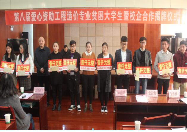 第八届爱心资助工程造价专业贫困大学生暨校企合作揭牌仪式在我院顺利举行