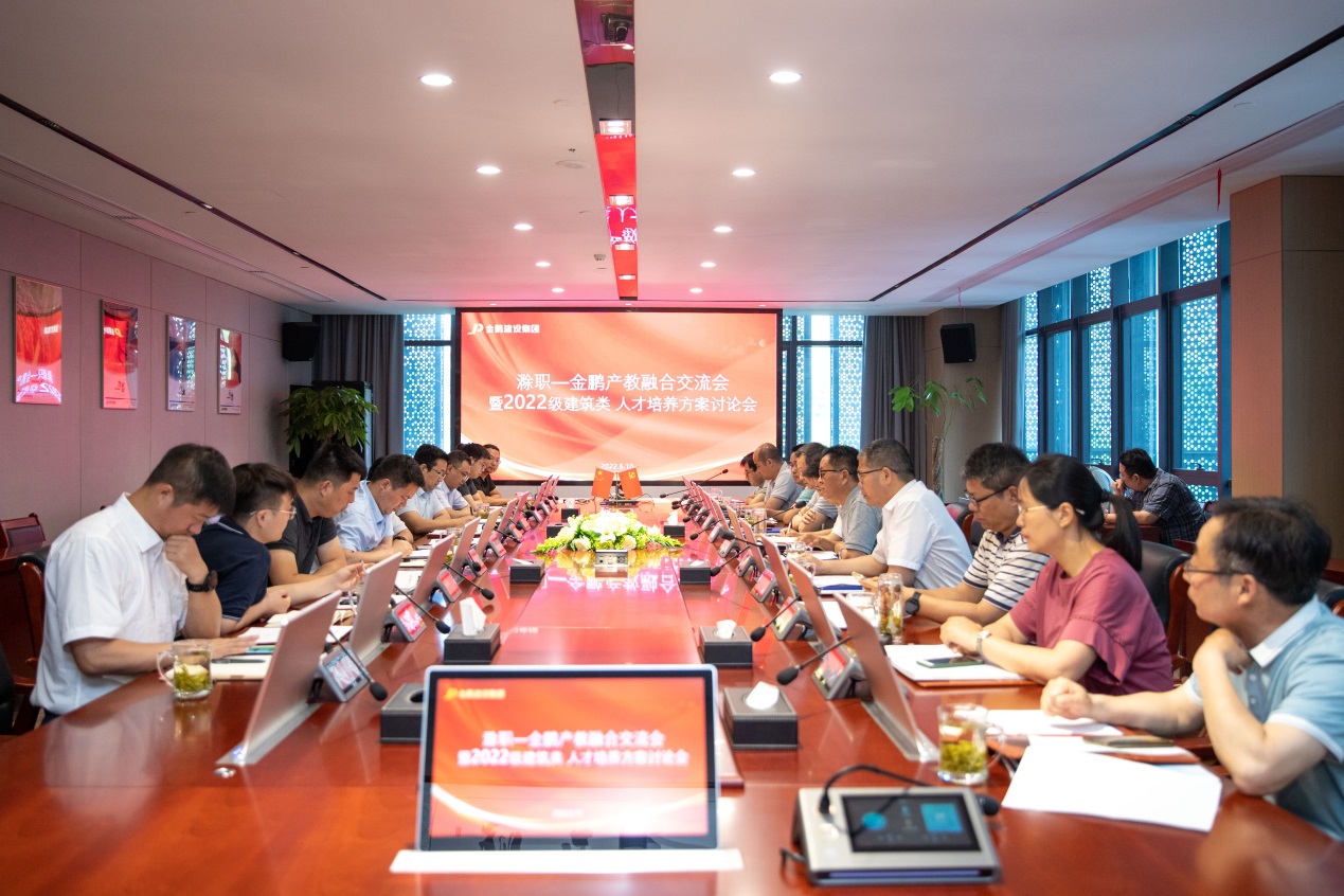 为进一步对接国家长三角一体化发展战略,服务地方经济社会发展,加强校企合作、产教融合,6月10日上午,Beat365与金鹏集团的“滁职-金鹏产教融合交流会暨2022级建筑类人才培养方案讨论会”在金鹏控股大厦举行,金鹏控股集团总裁孙元祥携集团副总裁胡家顺博士、许永及工程技术、工程管理、产业研究等方面负责人进行座谈交流。校党委委员、副校长苏有良出席了交流会,建筑工程学院院长朱永祥、总支书记刘文元、招就处副处长周多道、教务处副处长唐义武及建工学院副院长张国富等相关人员参加了座谈。会议上建工学院朱永祥教授主持。