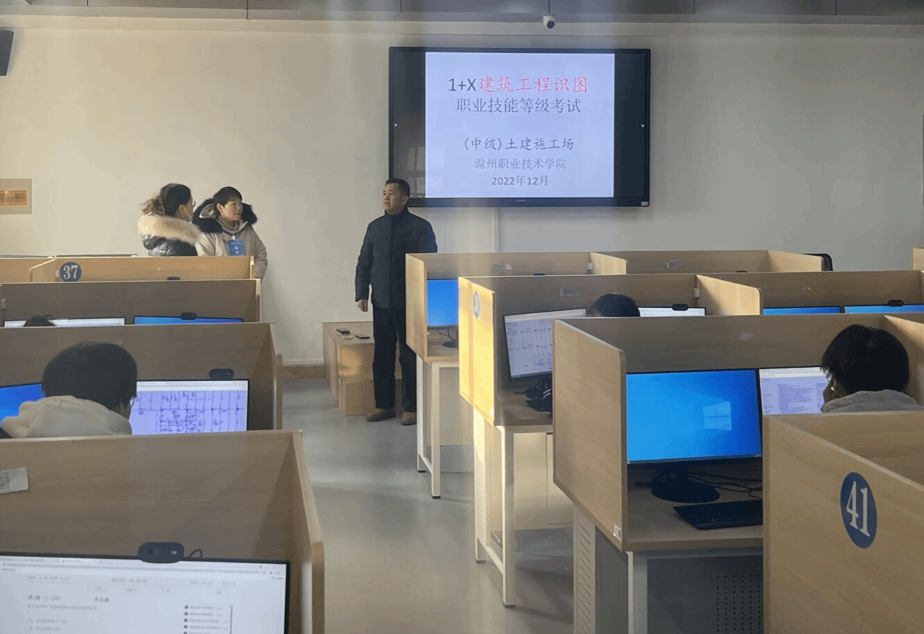 12月11日上午8:30至12:00,全国“1+X”建筑工程识图职业技能等级证书(中级)——土建施工结构场考试在建筑技术综合实训馆三楼“1+X”建筑工程识图实训室进行,此次考试分为理论和上机实操两个项目,来自21级建筑工程技术专业、建设工程监理专业等的共计46名学生参加了此次考试。考试期间,建筑工程学院院长朱永祥对考场进行了巡视,对考试相关工作做出指导,以保障考试顺利进行。