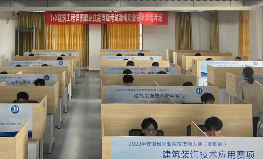 这是我院本年度第一次组织“1+X”建筑工程识图职业技能等级考试,也是自成功申报建筑工程识图职业技能等级证书试点院校以来首次开展的初级证书的考试,考试时间共180分钟,采用闭卷机考的形式进行,分为识图和绘图实操两部分,考试的内容包含建筑施工图纸识读、CAD绘图等,全面考核学生的理论素养和实践能力。