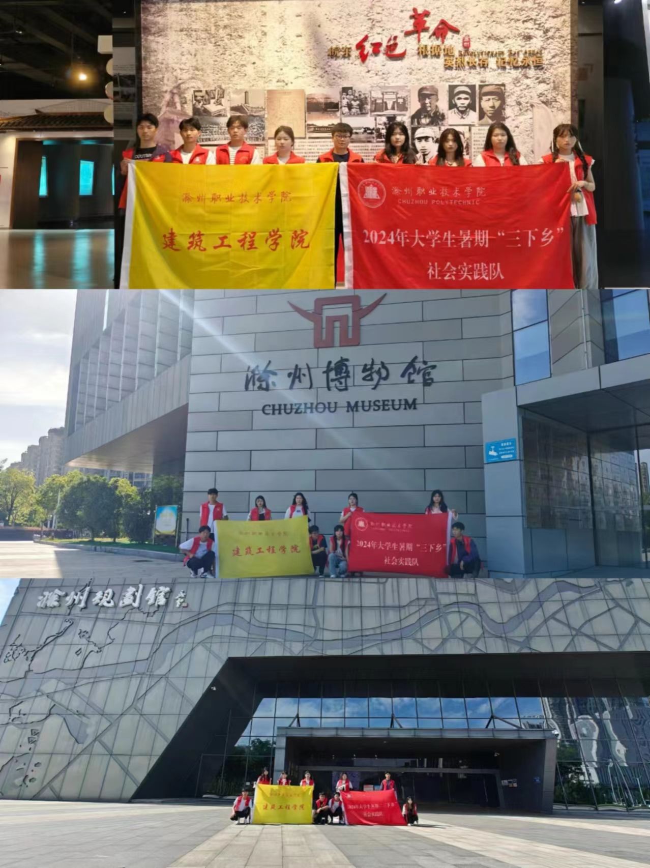 为深入贯彻落实党的二十大精神,弘扬红色历史文化,鼓动广大青年学子坚定理想信念,传承历史使命,建筑工程学院“建滁振兴”志愿服务队于2024年7月7日前往滁州市博物馆和滁州市规划馆开展暑期“三下乡”社会实践活动。 走进博物馆,同学们参观了“襟江带淮、名山秀水”主题自然文化展厅,见识到了滁州特有的自然风光,岩溶地貌、丹霞胜境、丰富的矿藏与独特的动植物资源等令同学们大开眼界。走至二楼“风云江淮、诗咏琅琊”主题历史展厅,一起观赏开启七千年文明进程的侯家寨遗址等,深入探索滁州多元的历史文化,同学们感受到了滁州厚重的历史文化底蕴,更加坚定文化自信。