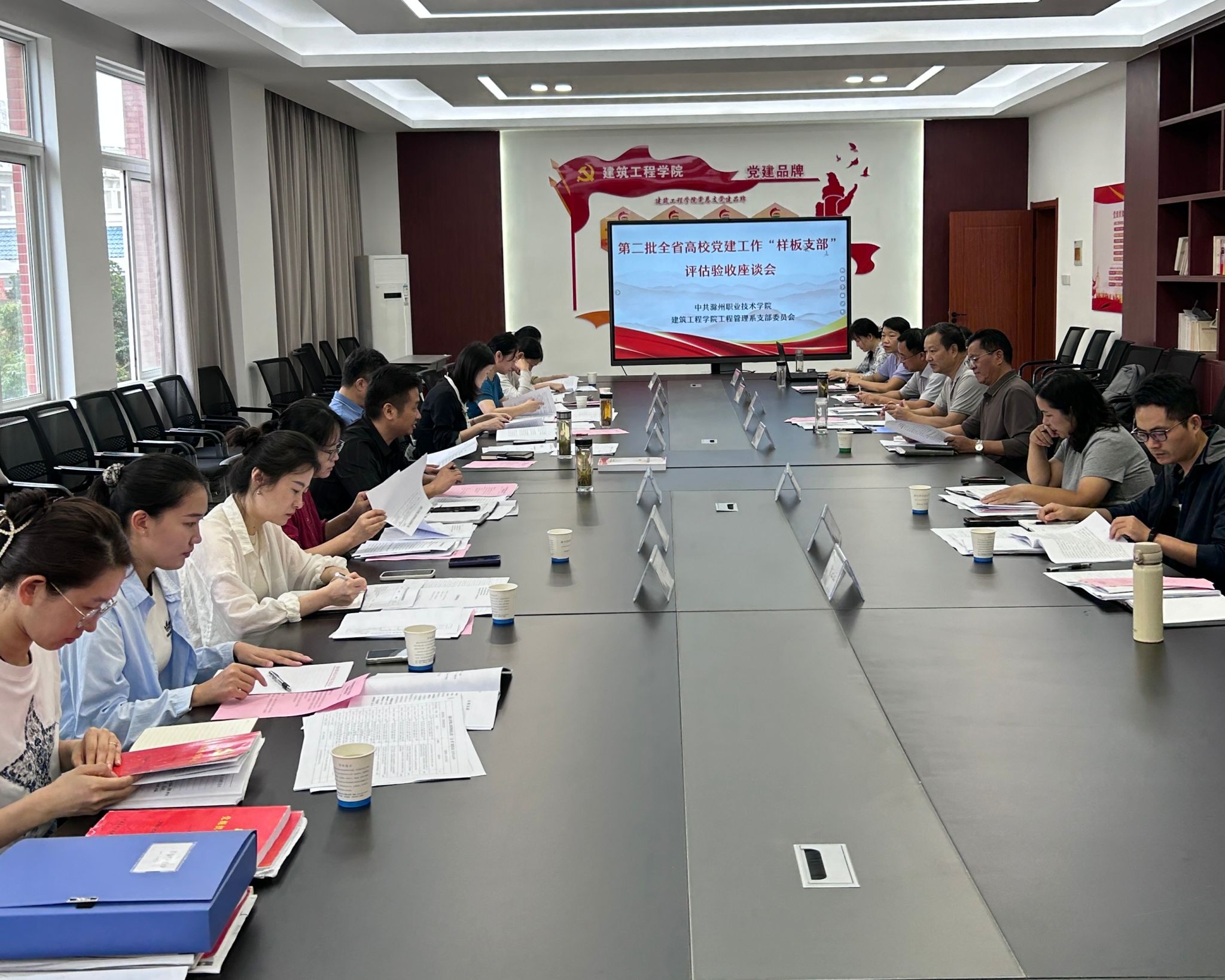 会上,王厚红首先介绍了评估验收工作总体安排,刘文元代表建筑工程学院党总支向验收评估工作组做“样板支部”建设基本情况汇报,闫秀芳代表工程管理系党支部详细汇报了支部立项全省高校党建工作“样板支部”培育创建单位以来聚焦“七个有力”,在支部重点任务、体制机制、组织机构、队伍建设、资源投入、硬件设施、经费支持等方面的落实举措和工作成效。与会人员进行了深入的交流座谈。