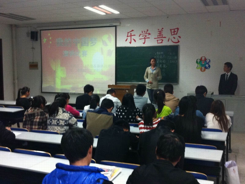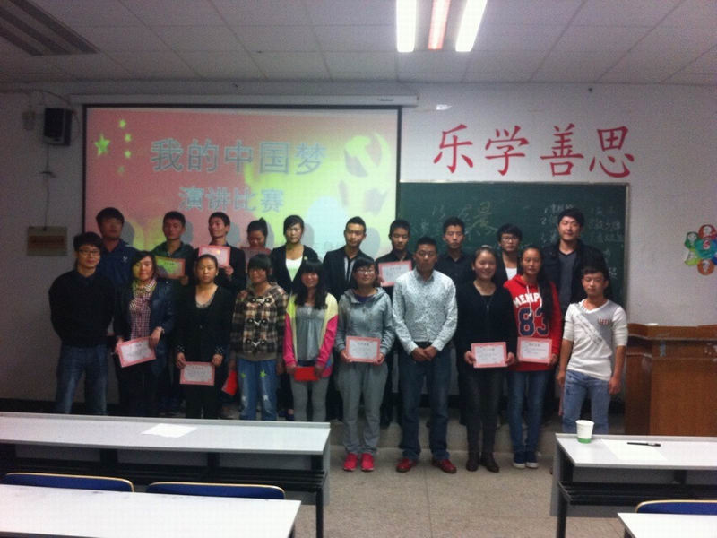 2013年10月29日,土木系举办“我的中国梦”演讲比赛,评委有土木系学生会指导老师张锐、系学生会团委副书记阚宏磊、系学生会纪检部部长赵洋和学习部部长戴波。全系共有20名选手参加比赛,经过激烈的角逐,査银玉同学以流利的语言和清晰的思路获得本次比赛的一等奖,孟超、高聪聪同学获得二等奖,张梦、张滢、何晓东同学获得三等奖,其他选手获得本次比赛的优秀奖。