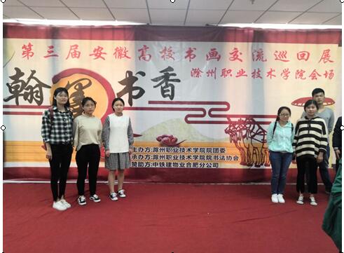 中铁建物业合肥分公司一直致力于在校生的培养,为了给学生更好的学习环境,与我院合作成立了“中铁班”。在学生在校期间,不仅在生活上给予很大的补助,而且在学习和综合素质的培养上,也给学生极大的帮助。此次第三届安徽高校书画交流巡回展,中铁建物业合肥分公司也是大力的支持赞助,给学生创造一个良好的平台,提高整体的素质和修养。