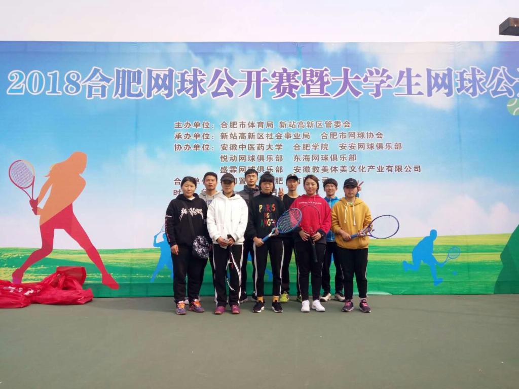 2018年3月25号土木系网球协会会员黄文静(队长)、牛伟玮、王文豪在沈连梅沈老师的带领下参加了“2018合肥市大学生网球公开赛团体赛”。男女子团体赛分别取得冠军。三月是个朝气蓬勃的季节,会员们本着友谊交流、以赛促练的心态参加本次比赛。