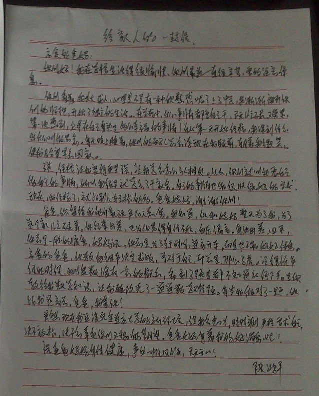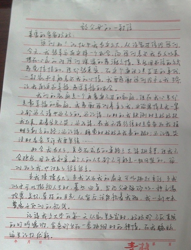 辅导员董波老师在班会上介绍了孝文化的形成、内涵、作用及孝文化在现当代的发展等。早在寒假时,辅导员董波就发短信给每位同学,要求大家在假期里,为父母做一件事,比如“捶一次背”、“做一次饭”。这次班会要求大家给父母写一封信,充分表达对父母的感情,“爱要大声说出口”。