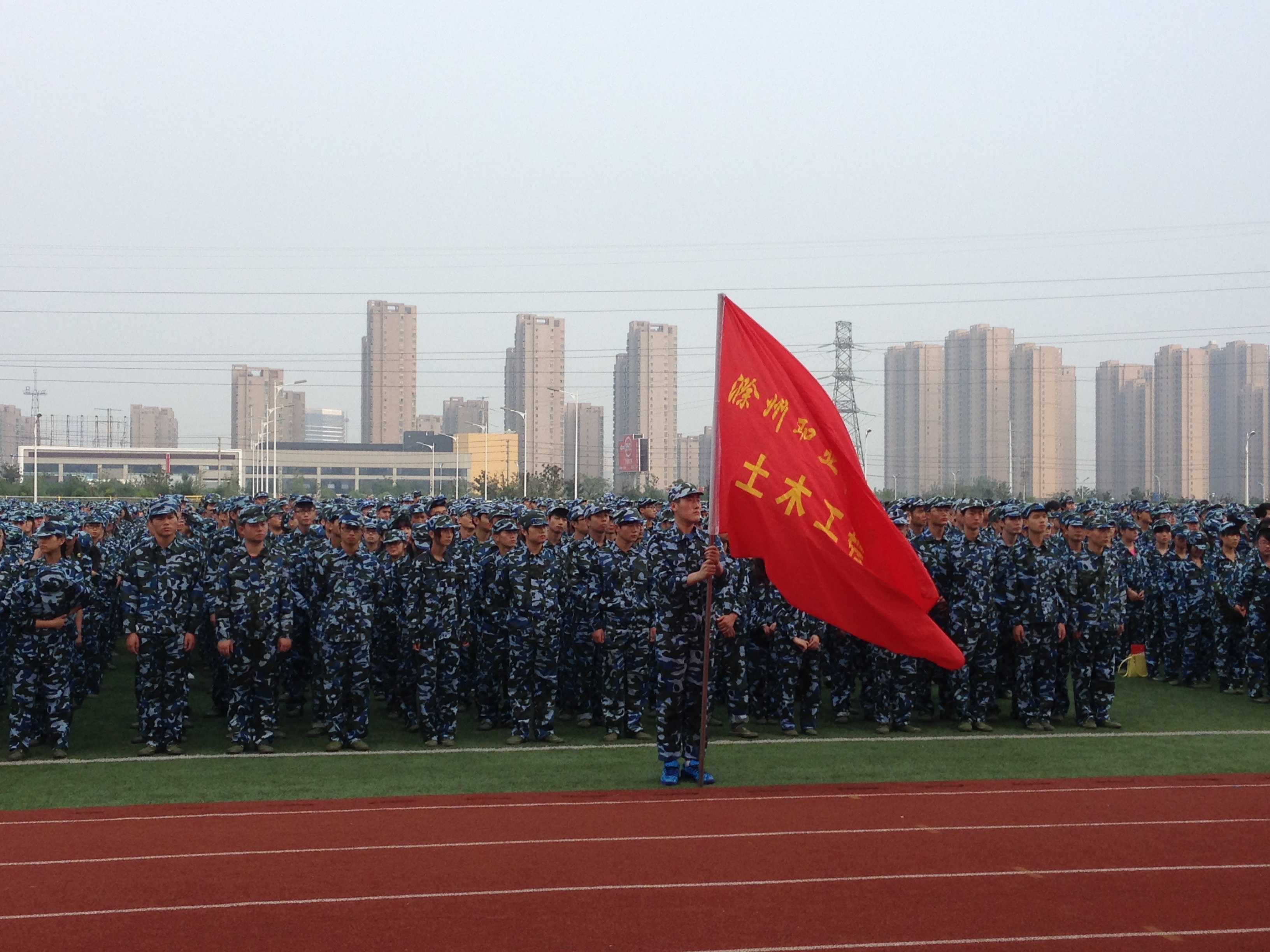 9月29日下午Beat365唯一官方网站在新操场举行2014级军训闭幕式,土木系新生根据教官的指挥安排,有条不紊的将本次军训的成果正式展现。在闭幕式开始前,我系14新生就提早在指定点将队伍组织完毕,进而根据指挥从指定的地方通过操场走到主席台对面的草坪上。从现场来看,我系新生昂首阔步,步伐整齐,也很规范有力。