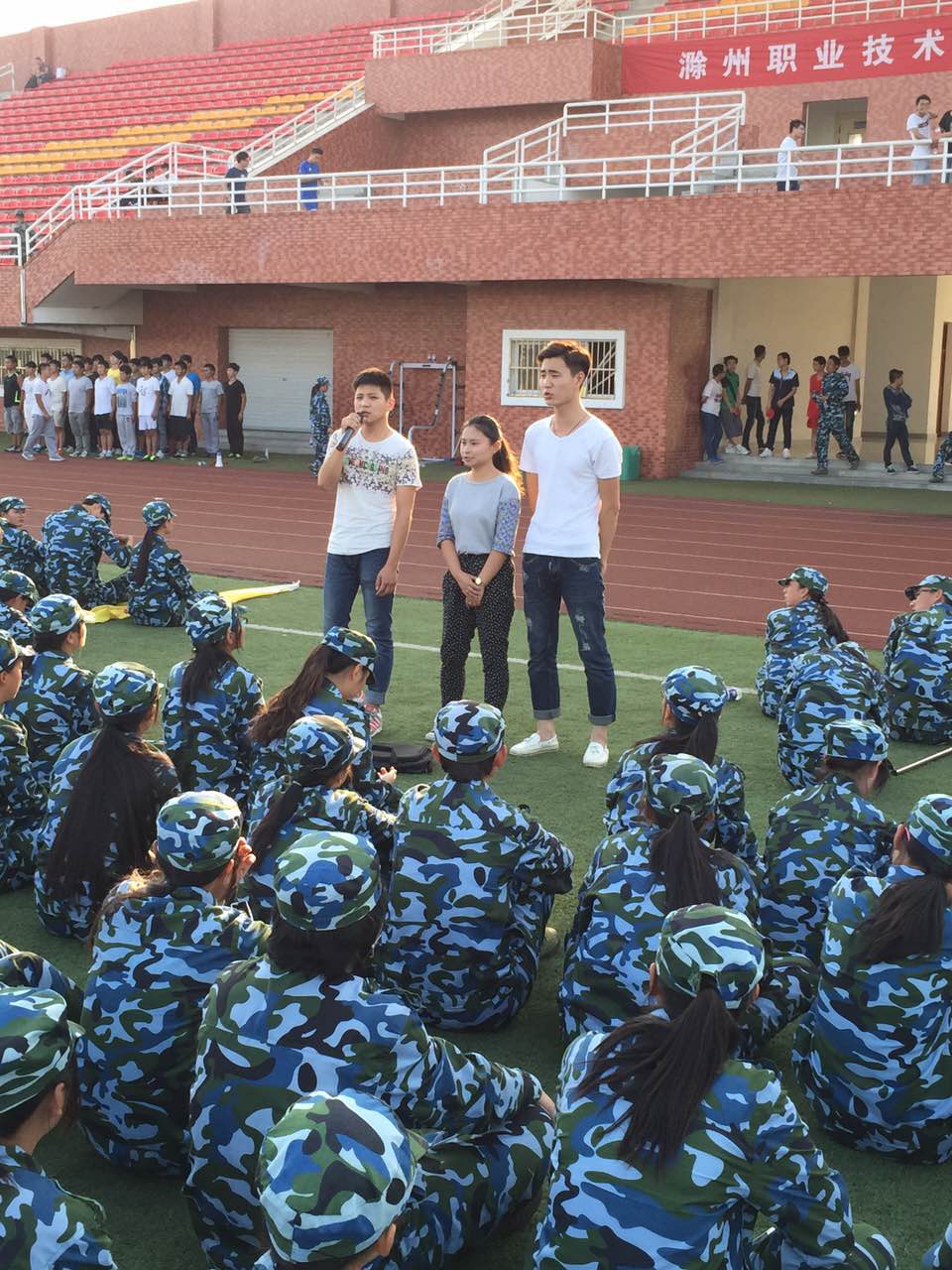 9月28日下午,土木系团总支安排我系歌唱表演水平较好的辛海洲、管非凡、田雪杰等同学进入到土木系的军训方阵,将滁州职院校歌《江山代有才人出》教给各位新生学习传唱。校歌是一个学校的灵魂,它代表了一个学校的精气神,同时也代表了一个学校的文化。