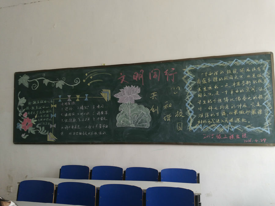 近日,为积极响应滁州市文明城市创建工作,土木工程系开展了“文明创建”主题的黑板报评比。系团总支向学生们发出倡议:要时刻以社会主义核心价值观为准绳,以《文明公约》守则为遵循,积极参与文明校园创建活动,成为文明风尚的践行者和传播者,为滁州市精神文明建设和全国文明城市创建贡献一份力量。