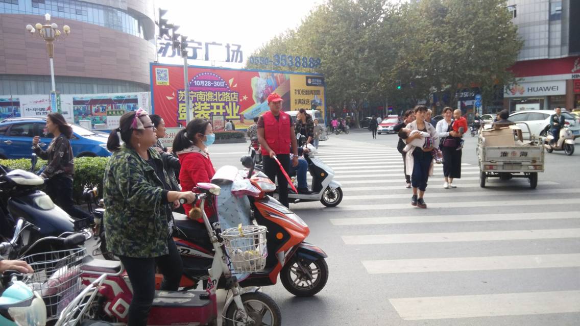 近日,为了积极配合全市文明创建工作,由土木系团总支组织部分学生在滁州市天长路和南谯路路口口协助交警指挥交通。为了更有效的协助指挥,团队分成几组进行,成员分别站在斑马线两侧进行指挥。