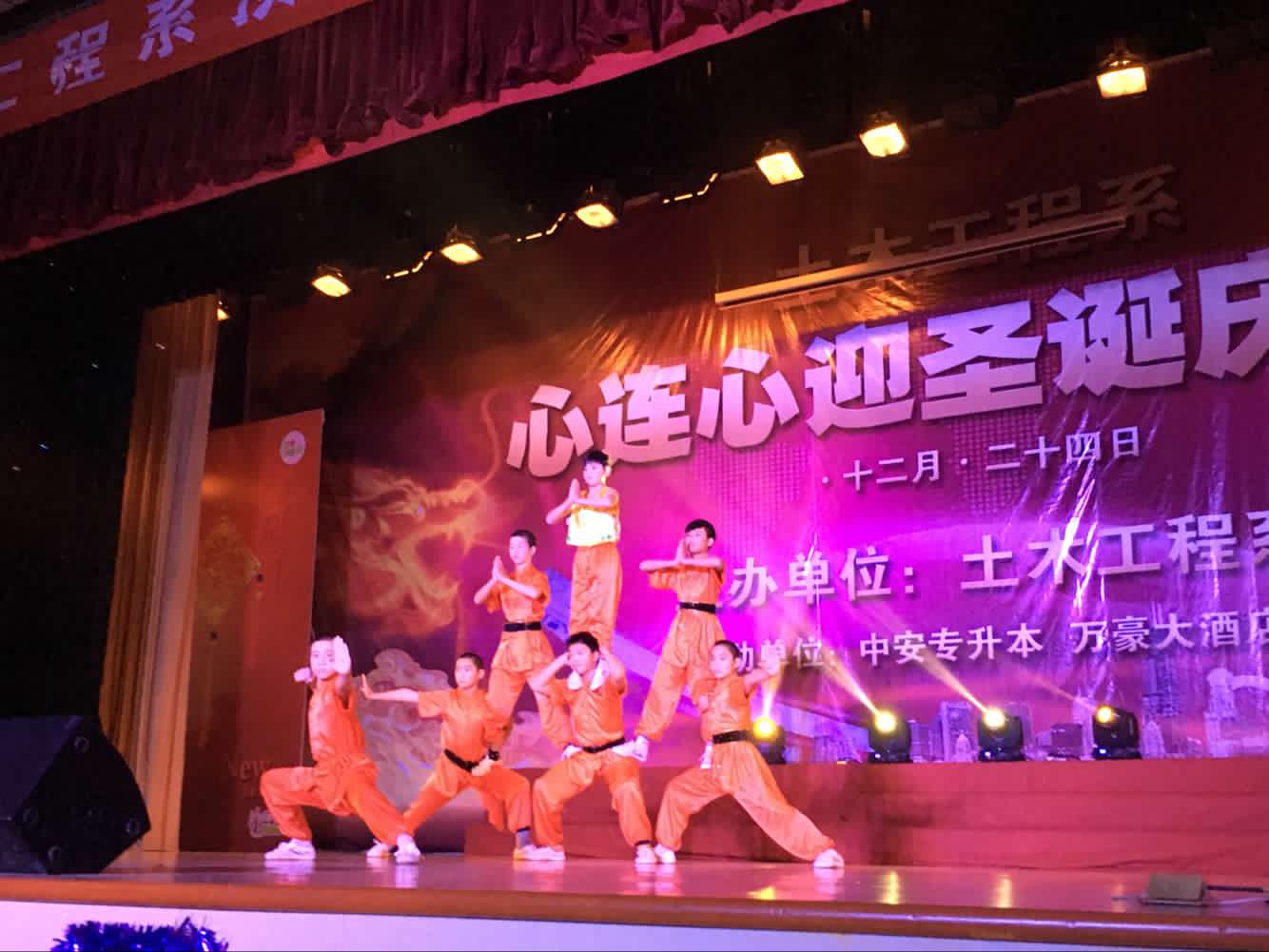 晚会于七点整开始,热情的开场舞拉开了本场晚会的序幕。接着是土木系党总支书记刘文元向大家致新年贺词,希望大家在新的一年里好好学习,努力拼搏。整场晚会的节目内容流行与古典兼收,温情与火热并举,形式多样,精彩纷呈。中华文化传承不灭,舞龙舞狮表演《龙狮送福》矫健的身姿,刚健有力的的动作,将土木学子的风采表现的淋漓尽致,舞龙舞狮演员还走下舞台给同学们送去新年的祝福。双节棍的表演更是嗨翻全场,动感的音乐,潇洒的身姿,连贯的动作,引得台下连连尖叫。歌曲《海阔天空》、《你不是真正的快乐》轮番上场或活泼动感,或是浪漫温馨,风格各异,变幻多姿。让观众心旷神怡,沉醉其中。土木系学子的嘴上功夫也了不得,完美的B-BOX引得观众掌声不断。当然,一场完美的晚会怎么可以少得了T台模特的盛装出场,型男俊女们的模特走秀引得现场掌声与欢呼声不绝于耳,台上台下瞬间成了一片欢乐的海洋。美好的时光总是匆匆的,晚会最终在《难忘今宵》齐唱声中完美落幕。
