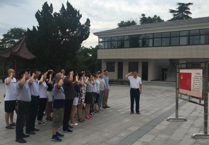 来到周家岗烈士陵园,系党总支副书记陈兴友向同志们讲述了抗日战争时期新四军进驻周家岗一带英勇作战的光辉事迹,烈士们的英勇事迹永远永远激励着我们要积极工作、敢于担当、乐于奉献。之后全体党员集体向烈士纪念碑三躹躬致敬,并在刘文元同志的带领下,在党旗下宣誓重温了入党誓词,使全体党员再次感受到中国共产党走过的96年艰苦卓绝的非凡历程,深刻的体会到一个共产党员的责任与使命感。