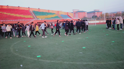晨跑活动结束后,土木系与食环系一起在操场举行了联谊活动,促进了两系之间的友好往来,也为“健走”活动的开展拉开了序幕。