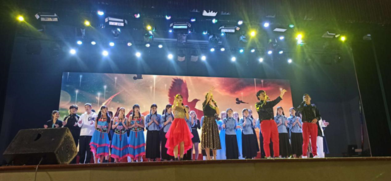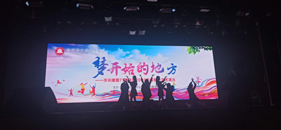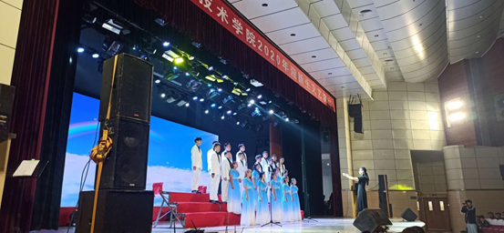 演出的最后在合唱中为此次晚会画上完美的句号。我相信它将化作一段美好的回忆,留在新同学的心中,随之闭幕仪式缓缓开启,由校领导上台与本次演出的全体工作人员进行和合照留念。
