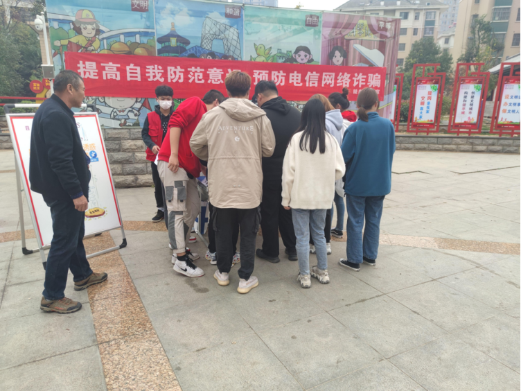 活动中,志愿者们走进社区,向居民发放宣传单,详细向居民讲解电信诈骗常见的种类、作案手法以及识别、防范的方法。居民也积极参与其中。