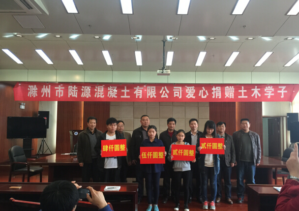 滁州陆源混凝土有限公司此次捐出了9000元用于帮助土木系数名家庭贫困的学生完成学业,希望此举带动更多建筑业的爱心人士支持公益事业,让贫困学子完成学业,让爱心更好地传递。也希望受助学生正视当前现实生活中的困难,争取通过刻苦学习成为有用之才,以实际行动回馈家乡,奉献社会。