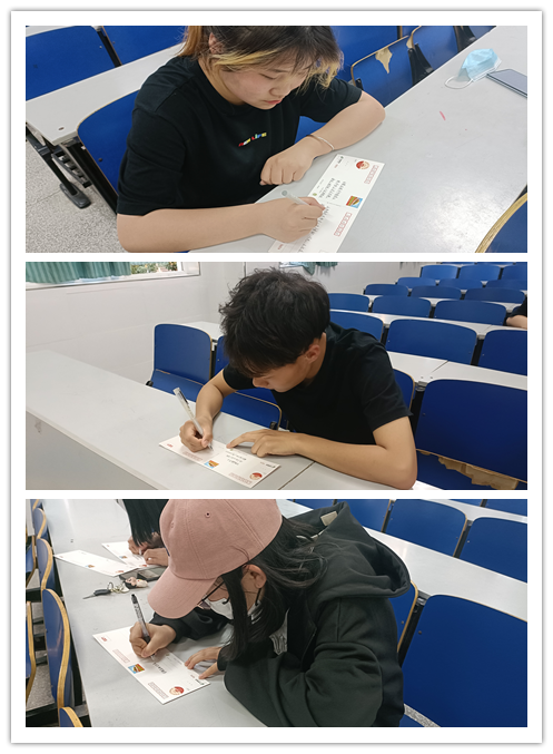 同学们积极参与,以真挚的感情抒发对祖国的热爱,通过书写明信片的方式,抒发铮铮爱国誓言,深化思想引领,凝聚青年力量,以满怀赤诚书写强国誓言,以无悔青春谱写奋斗之歌。