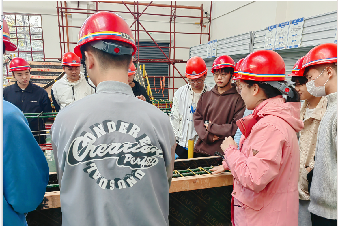 之后在两位老师的带领下,所有学生来到了建筑技术综合实训馆进行认知实习。程秋月老师对于本专业安全要求、专业知识等内容结合现场进行讲解,增强新生对建筑行业的了解。同时强调今后的学习中要理论结合实际,德智体美劳全面发展。