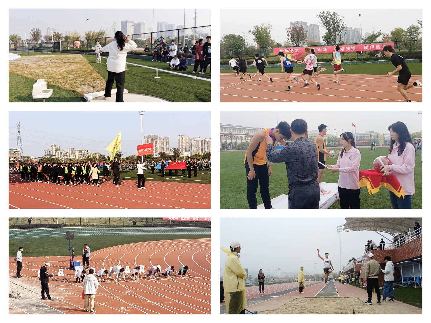 此次运动会设有男/女子组:100米、200米、400米、800米、1500米、3000米、4×100米接力、跳高、跳远、铅球等项目,赛场上,我院运动健儿顽强拼搏,勇夺第一。