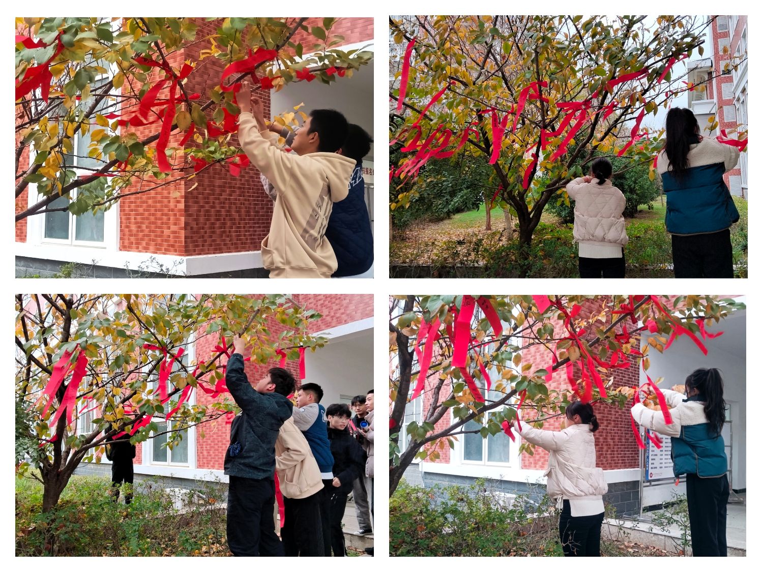 活动中,同学们积极参与,志愿者给同学们分发红丝带,让同学们把对艾滋病毒感染者的祝福写在红丝带上,让自己的祝福在树上高高飘扬,使得同学们真诚的祝福传播开来。