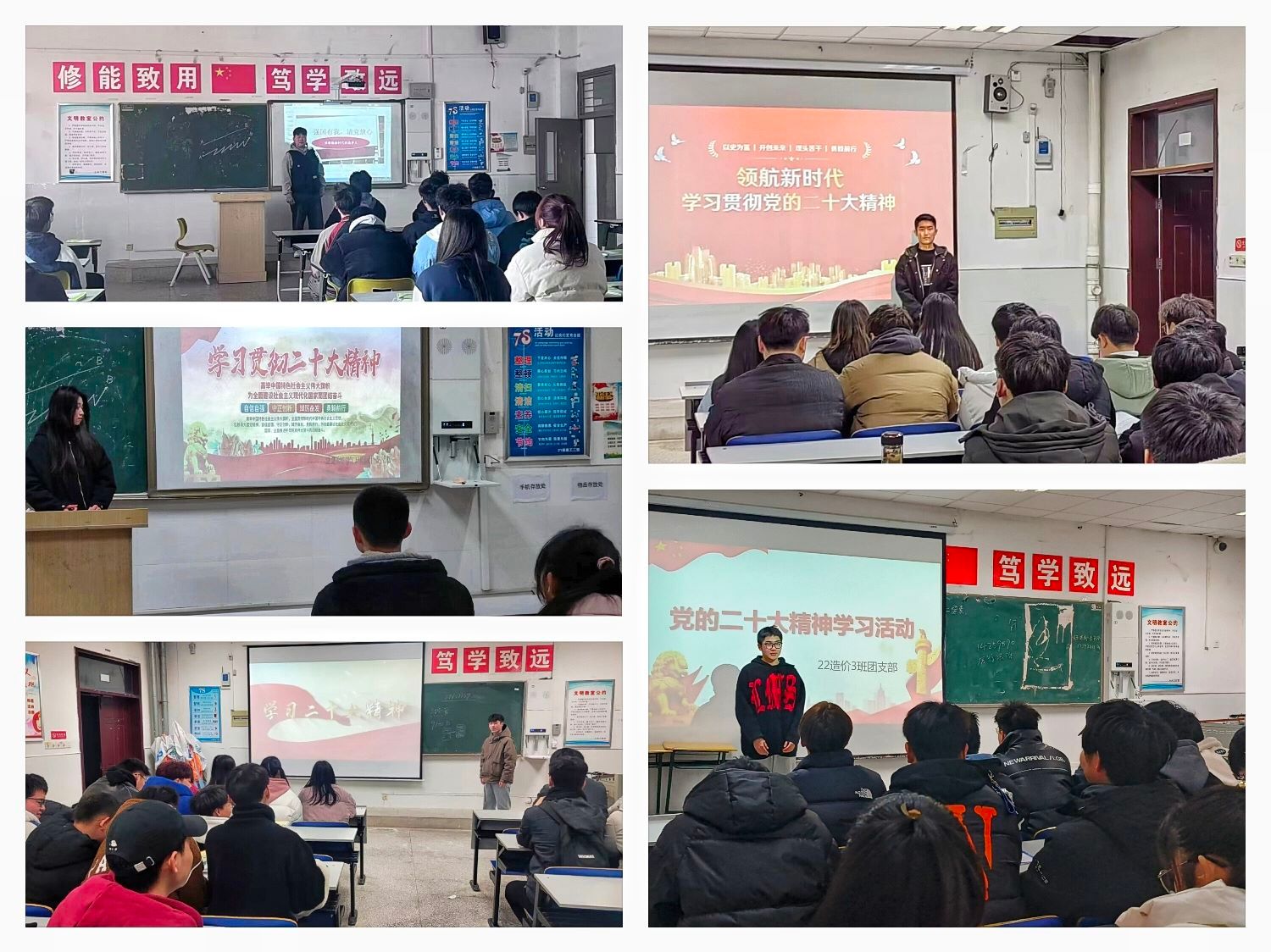 活动中,各班班长精心准备,网上查找资料,积极学习宣传贯彻党的二十大精神,激发了建工学子学习党史的动力。在这次演讲中,每位同学都深刻思考了党的二十大精神意义,并积极提问,使学习气氛达到顶端。