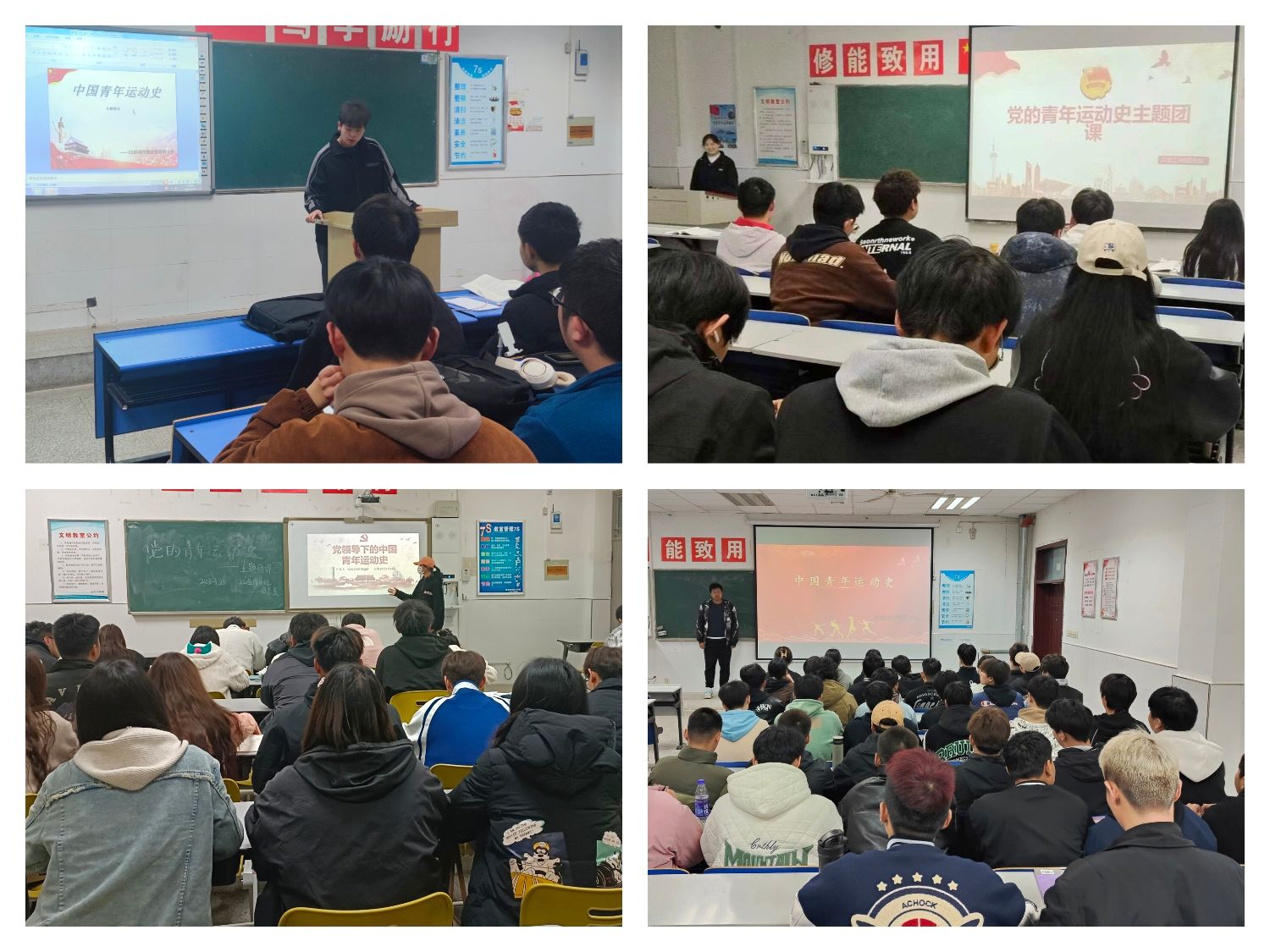 各班团支书带领同学们学习回顾了党领导下中国青年运动的百年历程,总结了共青团团结带领一代代青年在新民主主义革命时期、社会主义革命和建设时期、改革开放和社会主义现代化建设新时期和中国特色社会主义新时代的历史贡献,随后播放有关青年运动史的视频,同学们聚精会神的观看视频,也积极地参与到这个环节中,向其他同学讲述自己印象最深刻的党史,分享自己的体会和感悟。