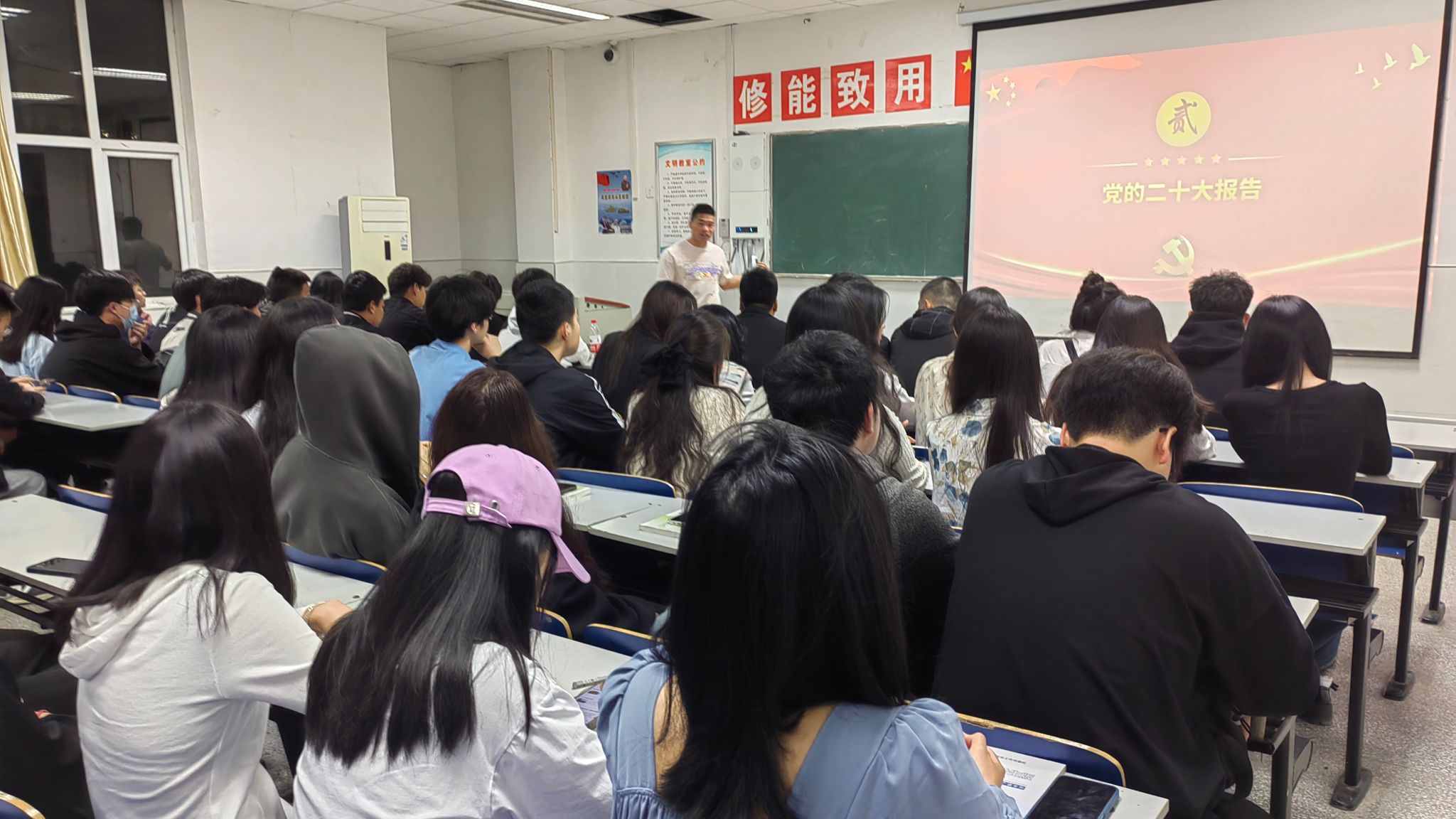 首先,吴超伟老师对党的二十大进行了简单的介绍。随后,通过党的二十大报告,引导我院青年全面了解、正确认识党的光辉历程和伟大成就,深刻领悟“两个确立”的决定性意义,增强“四个意识”、坚定“四个自信”、做到“两个维护”。活动最后,同学们纷纷表示要坚定不移听党话、跟党走,怀抱梦想又脚踏实地,敢想敢为又善作善成。
