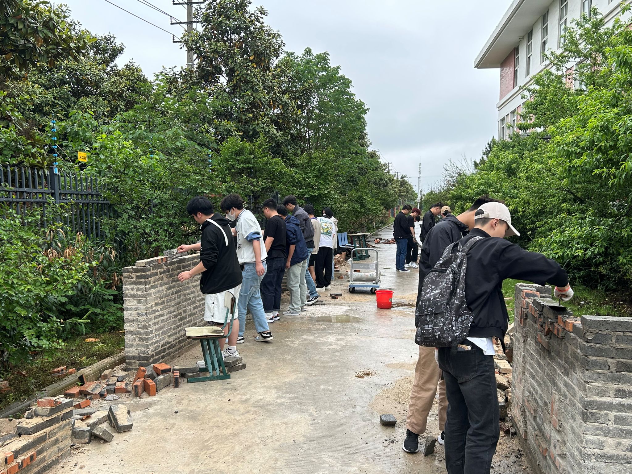 本次比赛采取室外实体砌筑的形式。所有参赛选手必须在规定时间内完成试题要求内容,包括墙上图形的砌筑等。由评委老师评定确定一、二、三等奖人员名单。竞赛中给学生统一发放试题,严格遵守比赛程序,统一提交比赛成果,着力提升专业技能竞赛的科技含量。通过这样的比赛,进一步提高参赛者对墙体砌筑以及二次结构构造要求的掌握。